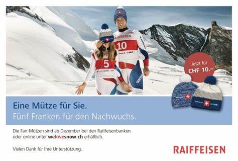 Kreation und Aufbau der Fan-Mützen-Aktion von Raiffeisen inkl. Fundraising-Aktion für den Schweizer Skinachwuchs in den Regionen.